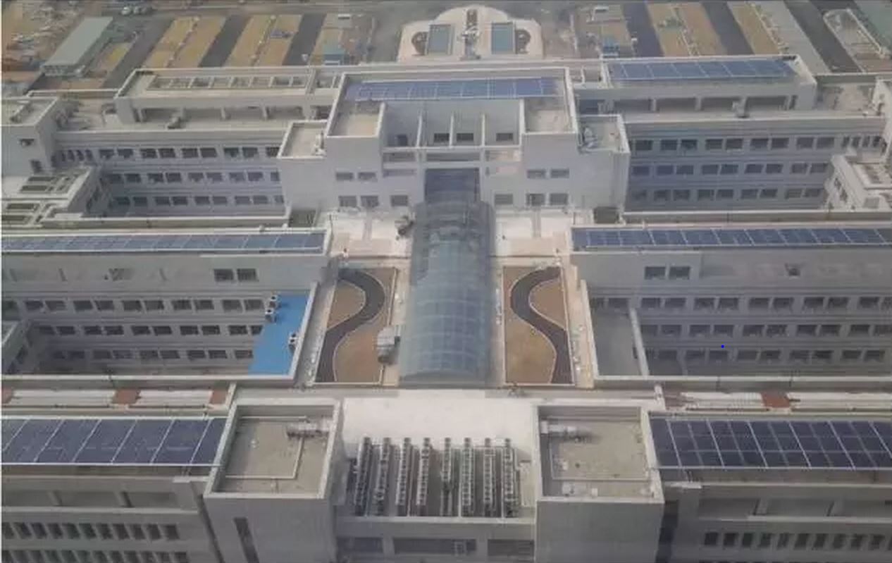 在门诊大厅、输液大厅、医疗街共享上空,滨州医学院烟台附属医院设计安装了共计