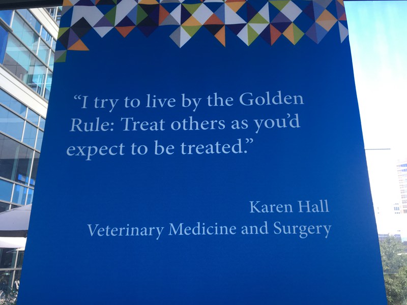 安德森癌症中心的走廊海报上是自己医院职工的格言