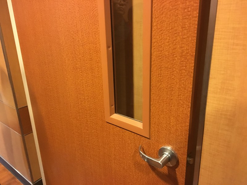 美国医院以人为本的理念更多体现在医院硬件设施的一些细节上。比如安德森癌症中心的病房门口都设置了一个密码保险箱,用来让病人存放一些贵重物品。国内的防火门往往要求常闭状态,但这与人员的交通需求其实是矛盾的,美国医院的防火门因为能够实现火警下自动关闭,因此平时是敞开状态,而在打开状态时靠近门扇的墙壁进行了凹陷处理,这样不仅美观,也避免了对行人的干扰。类似的细节考虑还有很多,如吊顶采用反射照明避免强光直射患者眼睛,走廊设置防止病床碰撞的防撞带,病房观察窗设置方便开合的百叶等。