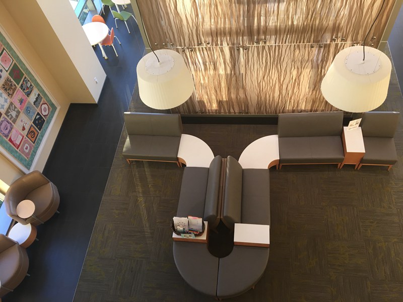 就连普通的一个等候区域,美国很多医院都进行了细致的划分,将其分为看电视区域、儿童游乐区域和安静等待区域,由闹到静依次排布,每个区域的色彩和家具都有所区分,力求给患者及家属带来贴心的感受。