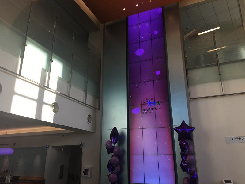 美国的医院普遍造价较高,在材料设备选用上往往不计成本,力争尽善尽美,对一些新技术新材料的运用也往往比较超前。这一点在参观加州大学旧金山分校医疗中心时感受尤为深刻,其位于Mission Bay校区的一栋刚刚启用一年多的儿童诊疗中心,面积9万平方米,总投资15亿美金。从一进门开始我们就感受到了一种高达上的科技范儿,墙壁上一个个无颜六色的圆盘吸引了来访者的目光,这是为了适应儿童的好奇心、缓解等候压力而专门设置的光学原理体验装置,几乎每个经过的人都会饶有兴趣地转上几圈,欣赏无颜六色的图案变化。而门诊大厅墙壁上硕大的彩屏在欢迎图案和文字的同时,也能感应到参观者的位置和身影,并将其叠加进显示内容中,从而产生互动。类似的设施还包括不断变换颜色的照明灯、用弹性十足的新型材料铺就的楼顶游乐场、带动态路线图的电子导向指示牌等等。这些高科技手段的运用,不但提升了医院的诊疗品质,也使得患者的就诊过程充满了惊喜和乐趣。